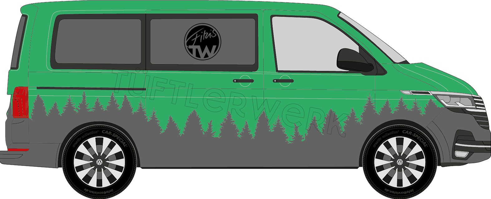 Das Sujet zeigt einen einfachen Wald rund um den Camper.